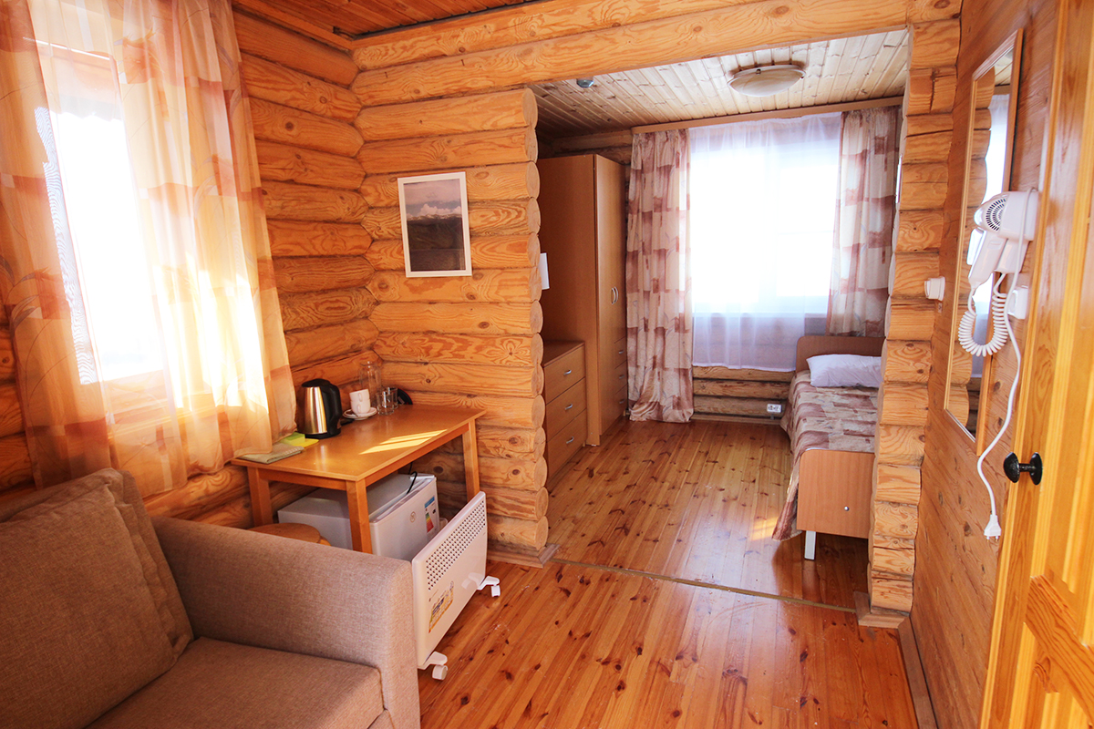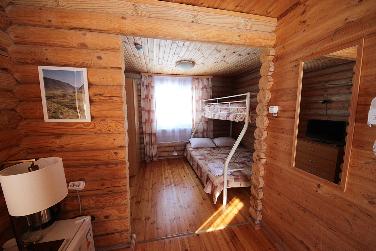 Планируете оздоравливающий отдых с другом или подругой? Хотите отдохнуть в экологически чистом месте с ребенком? Тогда выбирайте вот такой компактный домик из цельного круглого бруса! Находясь в нем, вы будете вдыхать полезный воздух натуральной древесины, а выйдя на улицу, будете наслаждаться великолепными видами на горы.
