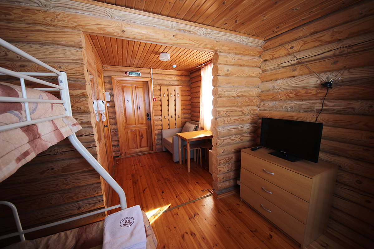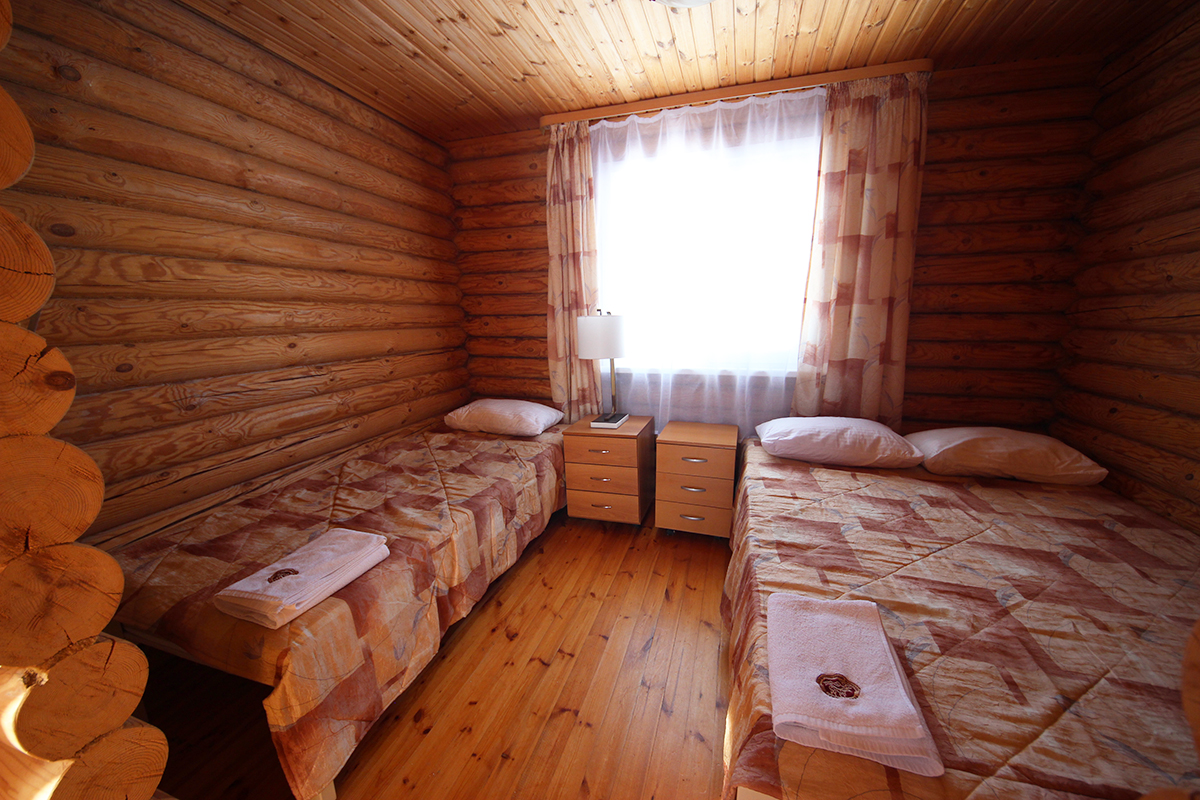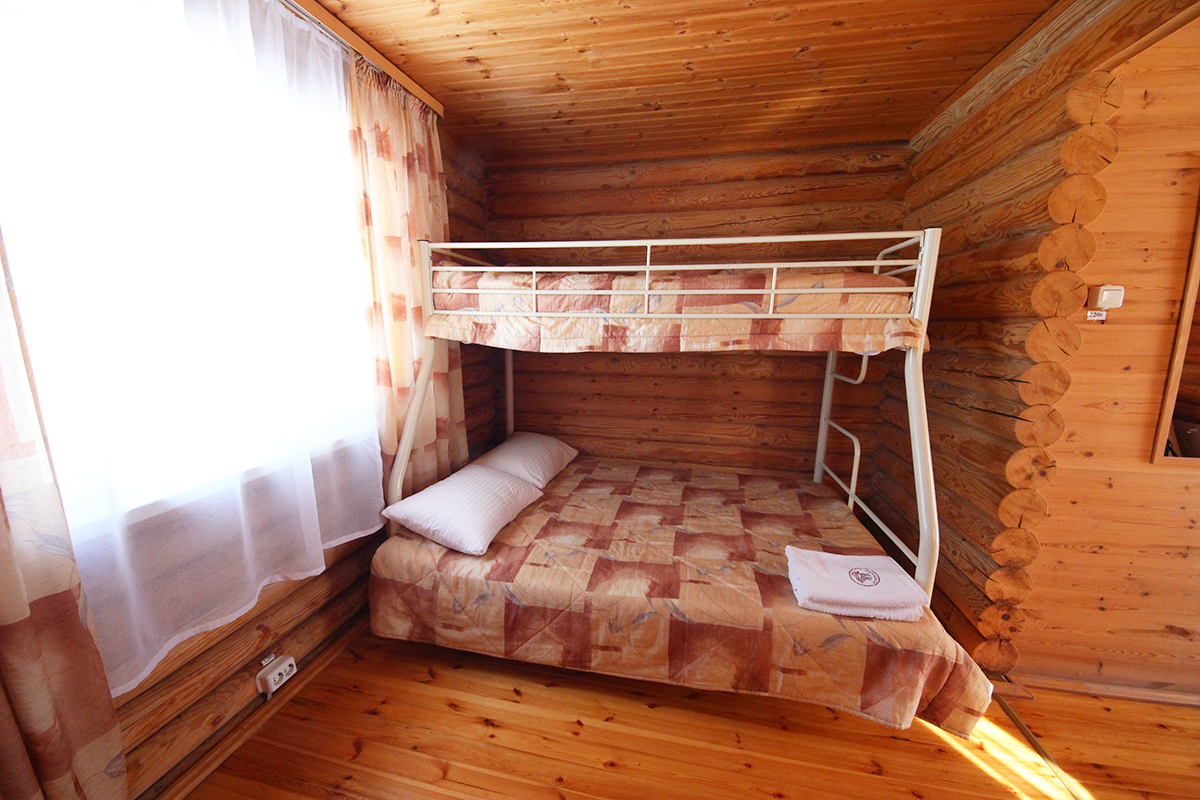Если нужно, можно разместить в домике еще одного человека на кресло-кровати (190х80). Гости питаются в кафе на территории комплекса.